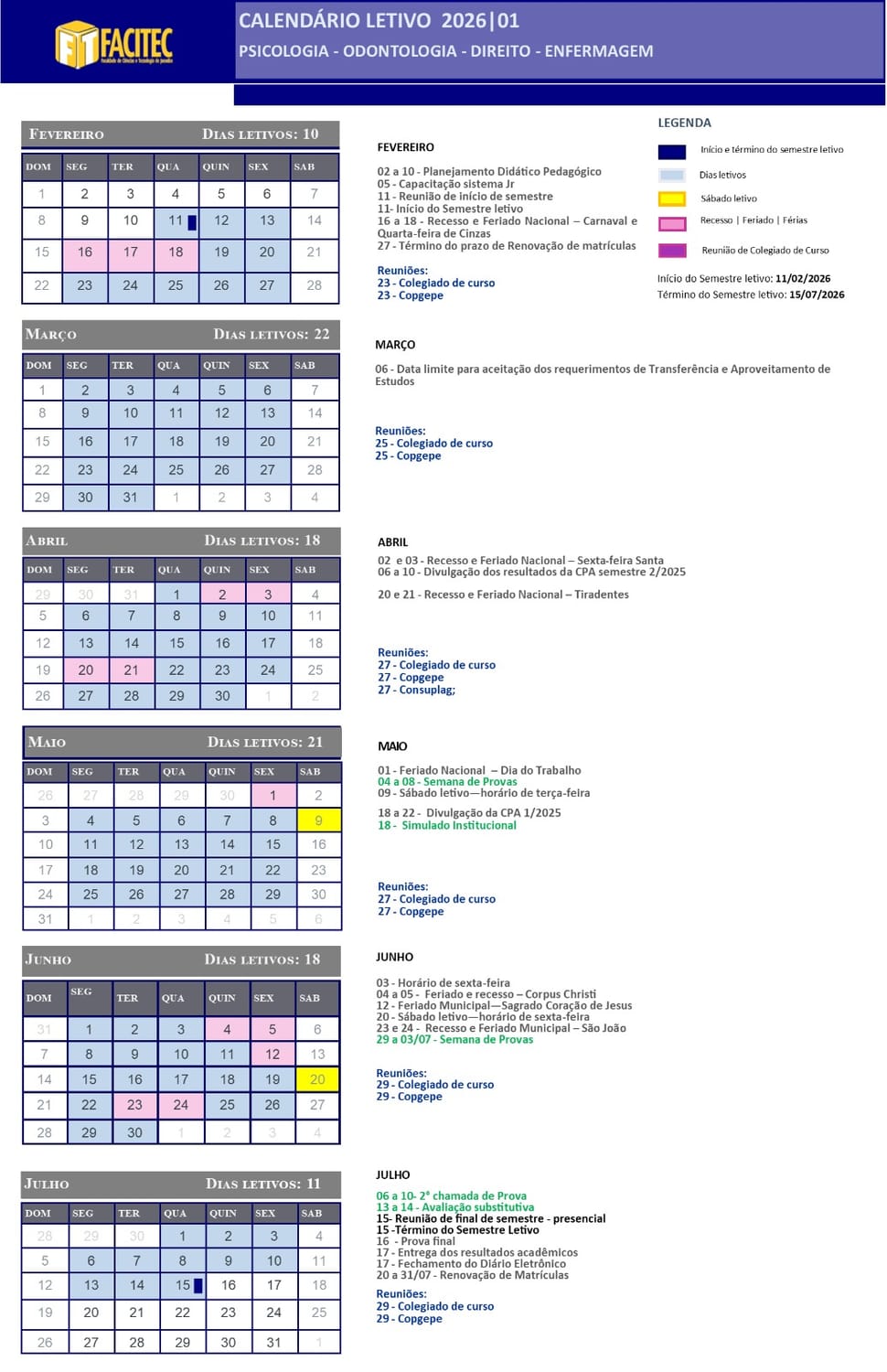 CALENDÁRIO ACADÊMICO